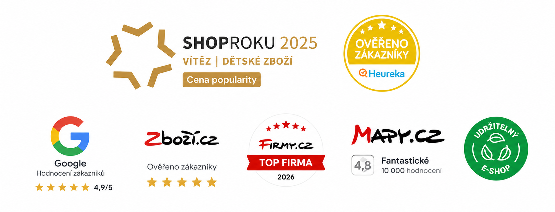 Máme obrovskou radost – získali jsme ocenění ShopRoku 2025 v kategorii dětské zboží. Děkujeme vám.