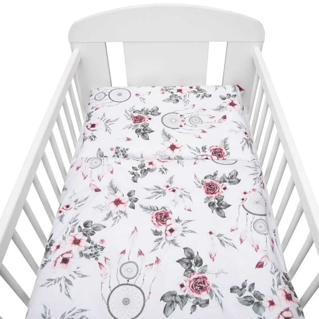 Souprava je zdobena originálními obrázky květů a pírek a je vyrobena ze 100% bavlny. Obsahuje povlečení na polštářek cca 40x60 cm + povlečení na peřinku cca 135x100 cm.