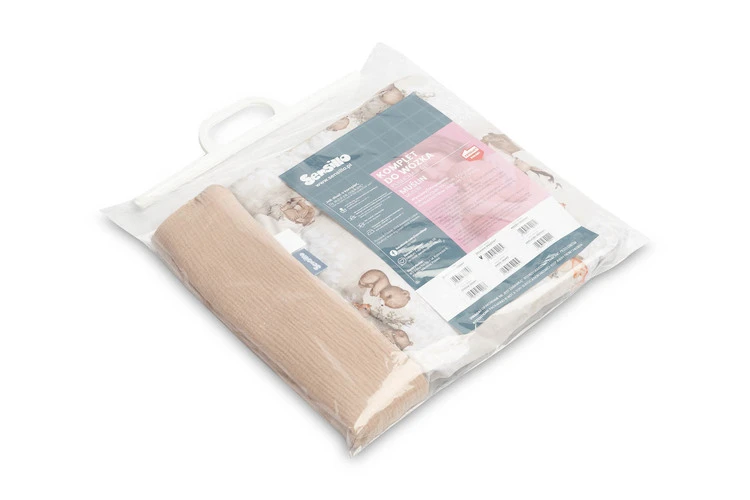 - Oboustranný design: Kombinace mušelínu a bavlněného materiálu s potiskem.