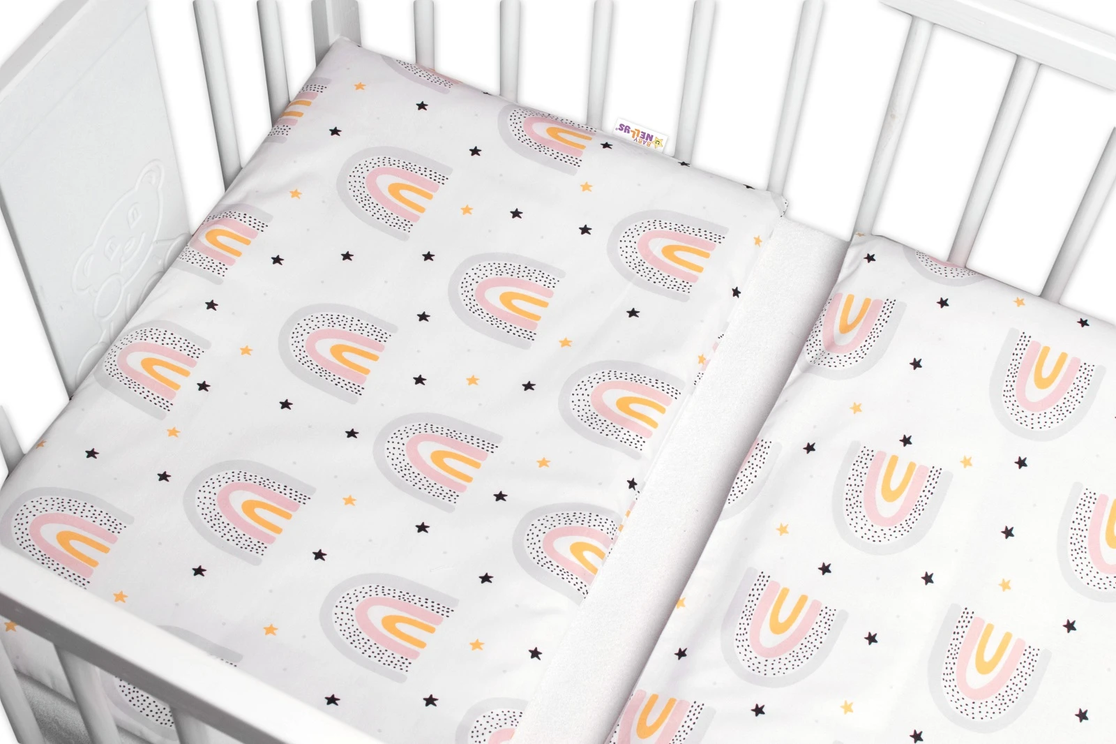3-dílná sada Mantinel s povlečením Rainbow bílá s potiskem 120x90 cm