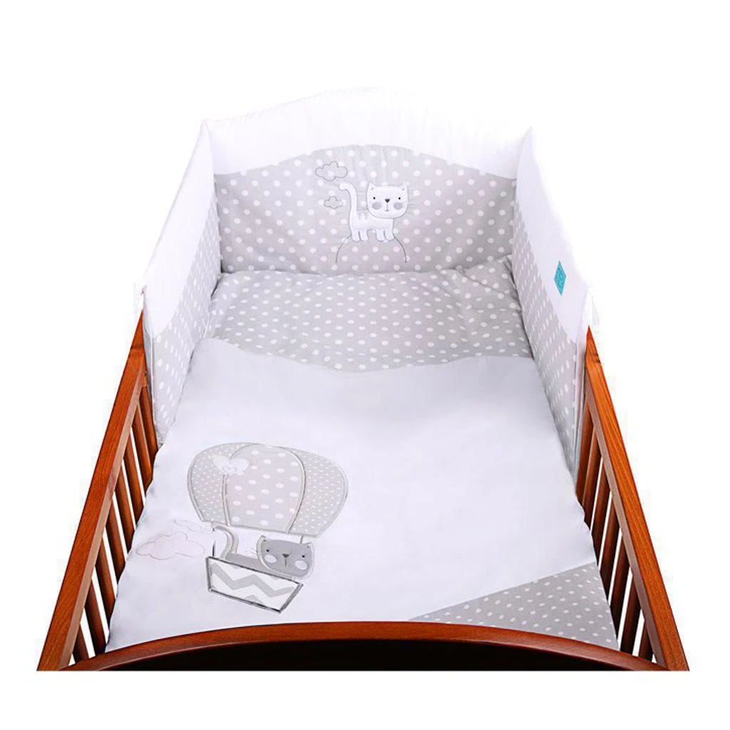 Souprava obsahuje povlečení na polštářek cca 40x60 cm, povlečení na peřinku cca 100x135 cm a mantinel cca 31x175 cm