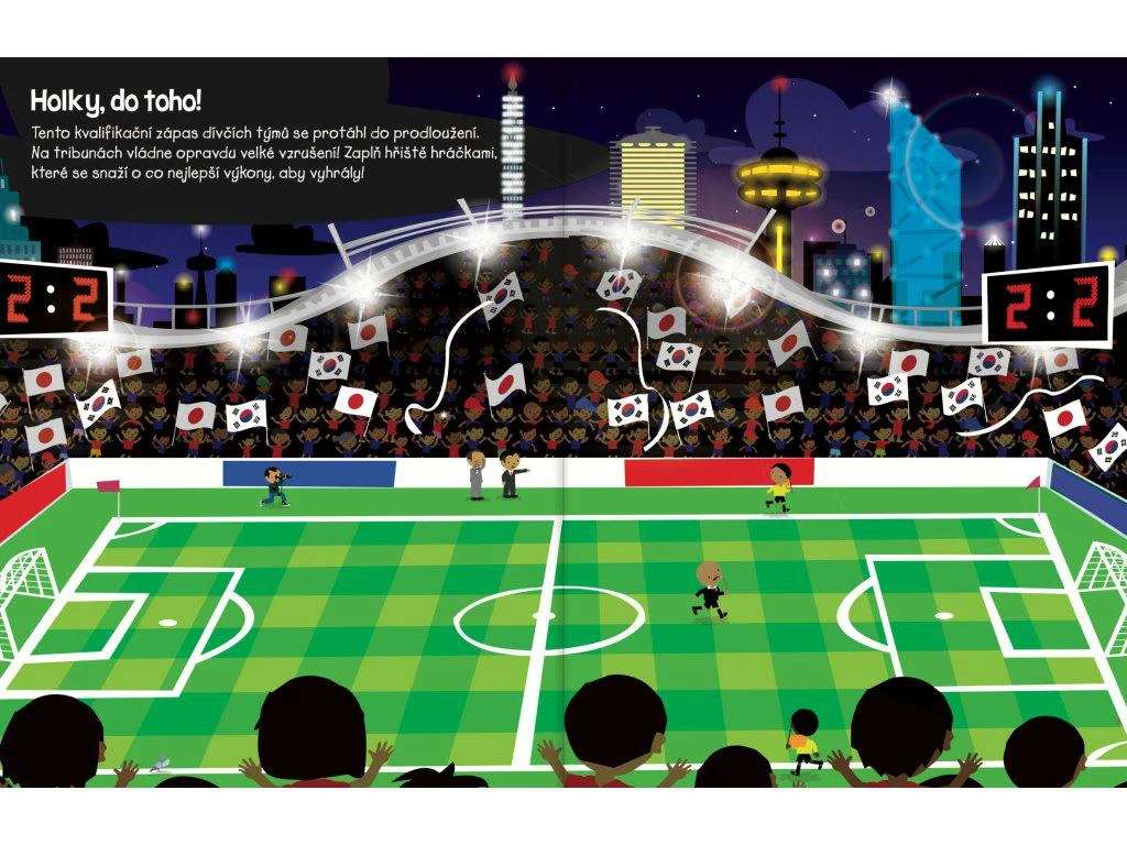 Více než 555 samolepek čeká na tebe a tvou představivost v tomto úžasném sešitě! Od prvních kvalifikačních zápasů a cest na zápasy až po náročné tréninkové přípravy a napínavé velké finále! Nazuj si kopačky a připrav se na pořádnou kopu zábavy! Doplňuj podle vlastní fantazie nepřeberné množství samolepek do nápaditých a detailních scenérií a dokonce si můžeš sehrát fotbalové mistrovství podle své představivosti.