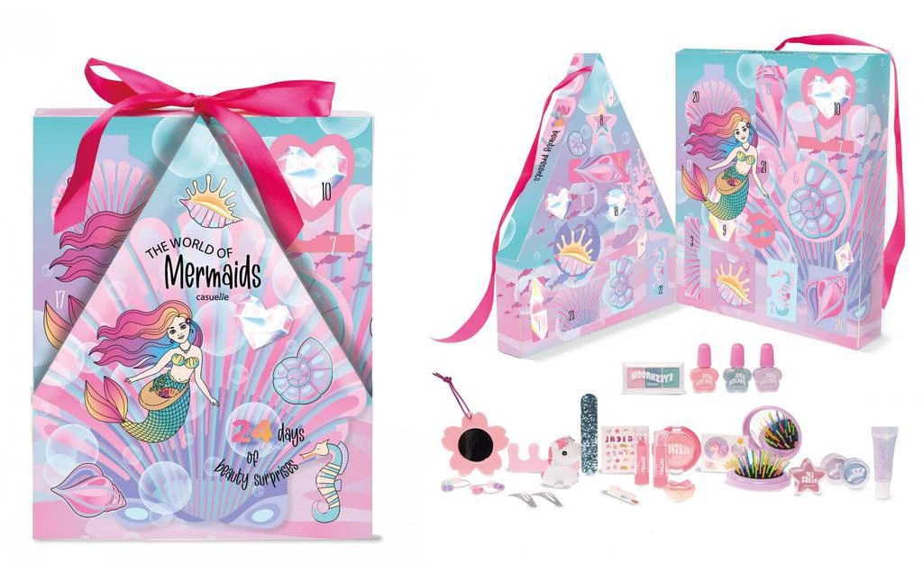 Kalendář obsahuje vše, co potřebuje pro svou krásu – od barevných líčidel a zrcátka, přes hřebínek, sponky a gumičky do vlasů, až po samolepky a další doplňky.Tento kalendář je skvělý způsob, jak zpříjemnit čekání na Ježíška a objevit spoustu radosti a zábavy.