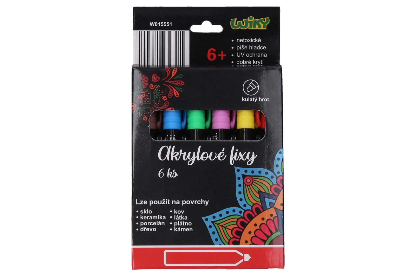 Akrylové fixy k použití na různé povrchy: sklo, keramika, porcelán, dřevo, kov, látka, plátno, kámen.