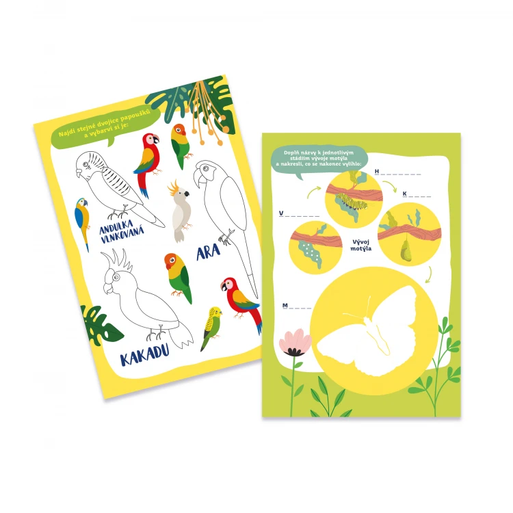 Ve speciálních omalovánkách uvnitř balení se dozvíte základní názvy zvířat, zkusíte si je vybarvit podle jejich skutečné podoby a podle čísel a vyzkoušíte si i další zajímavé aktivity.