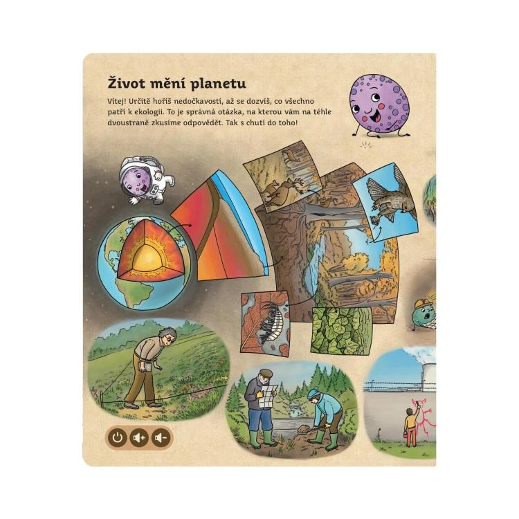 Kromě toho vás kniha vezme na vycházku do pravěké a moderní krajiny, nahlédnete do tajemného podzemí a dozvíte se, na co nadávají bakterie nebo jak si choroš představuje starý buk. Setkáte se i s kamarády Frantou a Pepou, jejichž pohled na přírodu je jako noc a den, což přináší spoustu dalšího poznání a zábavy.