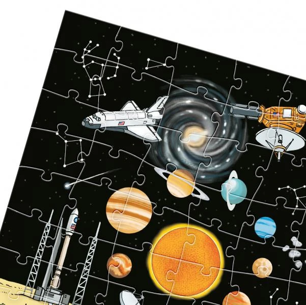 Složte si puzzle a vydejte se do vesmíru. Seznamte se nejen s jednotlivými planetami sluneční soustavy a vybranými souhvězdími, ale například i s technickými vymoženostmi, které člověku umožňují prozkoumávat vesmír. Dozvíte se, kdo byl jako první na Měsíci, co je to černá díra a mnoho dalších zajímavostí. Své znalosti si můžete vyzkoušet pomocí zábavných kvízů, které jsou rozděleny do tří různých kategorií.
