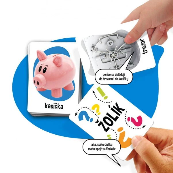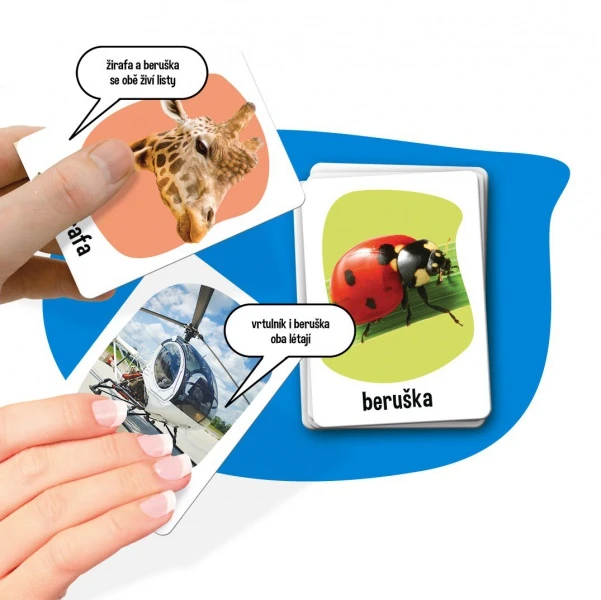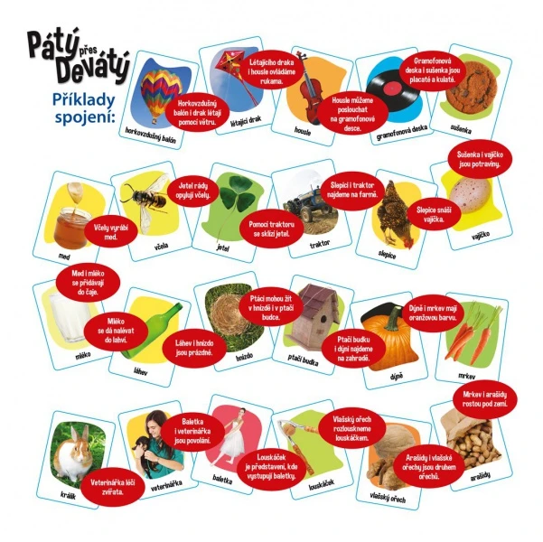 Veselá rodinná hra, kterou ale nepokazíte ani oslavu nebo párty. Cílem ve hře je hledat spojení i tam, kde zdánlivě nejsou. Co má společného vrtulník, žirafa a beruška?
