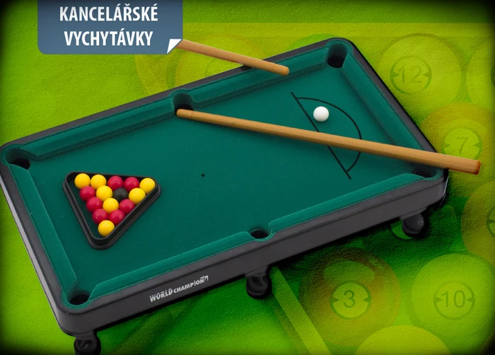 Nevíte, jak se zabavit v práci? Zkuste Stolní mini kulečník! Dejte si partičku se svým kolegou v práci. Pokud vás šéf chytí, zúročte svůj trénink a vyzvěte ho na souboj. Kdo bude lepší?