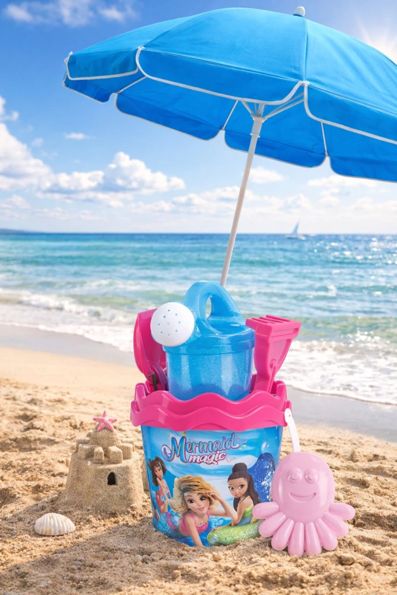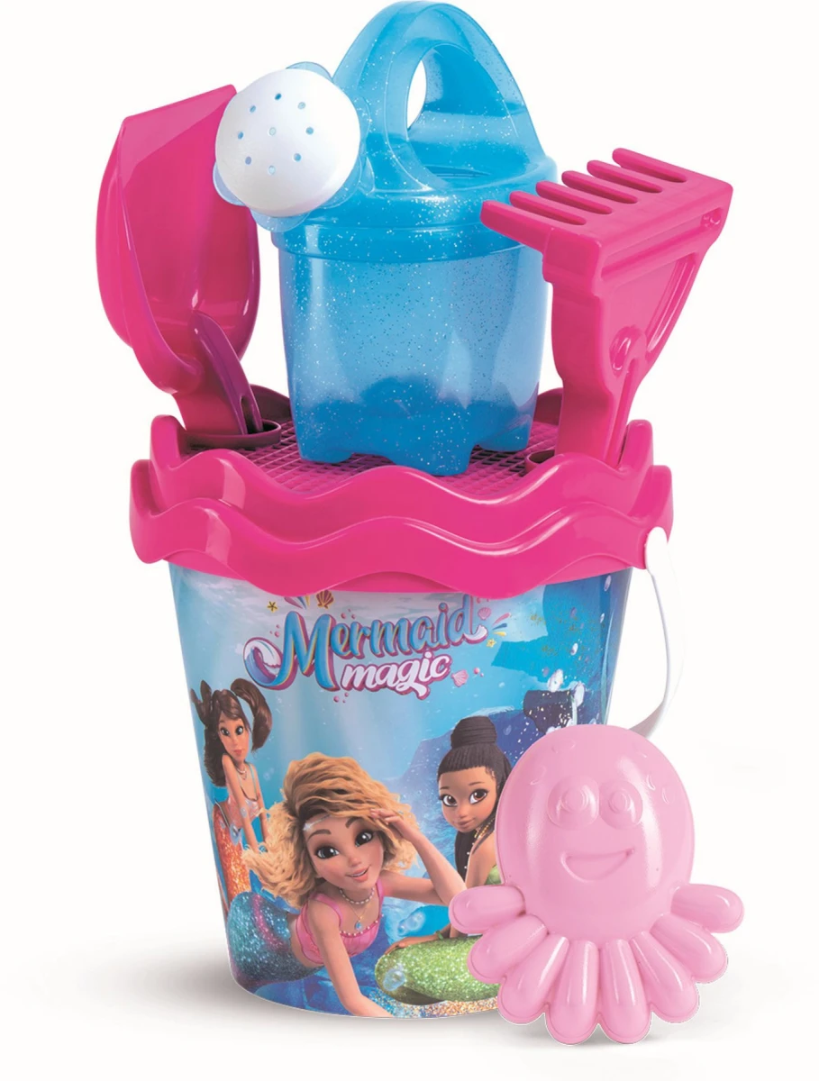 Sada obsahuje kyblík, konvičku se třpytkami o objemu 0,5 l, sítko, lopatku, hrabičky a tvořítko ve tvaru chobotnice. Velikost nářadí je přizpůsobena dětským rukám, takže se dětem dobře drží a snadno se s nimi pracuje.