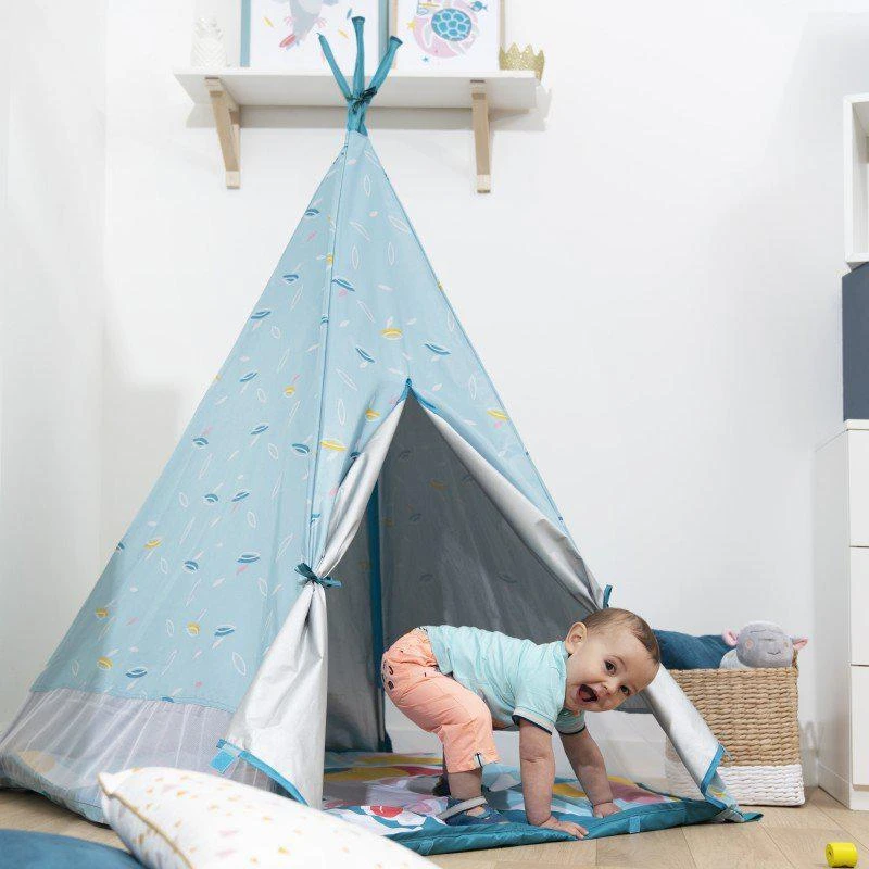 Stan Teepee je vysoký 1,20m. Díky své konstrukci je robustní a stabilní - Vaše dítě si v něm může hrát několik let spolu se svými kamarády či dalšími sourozenci. Teepee poskytuje ochranu před škodlivými slunečními paprsky díky své anti-UV SPF 50+ látce. Navíc, ve spodní části teepee jsou větrací otvory, které umožňují snadnější přísun vzduchu a zabraňují nadměrnému zahřívání vašeho malého anděla.