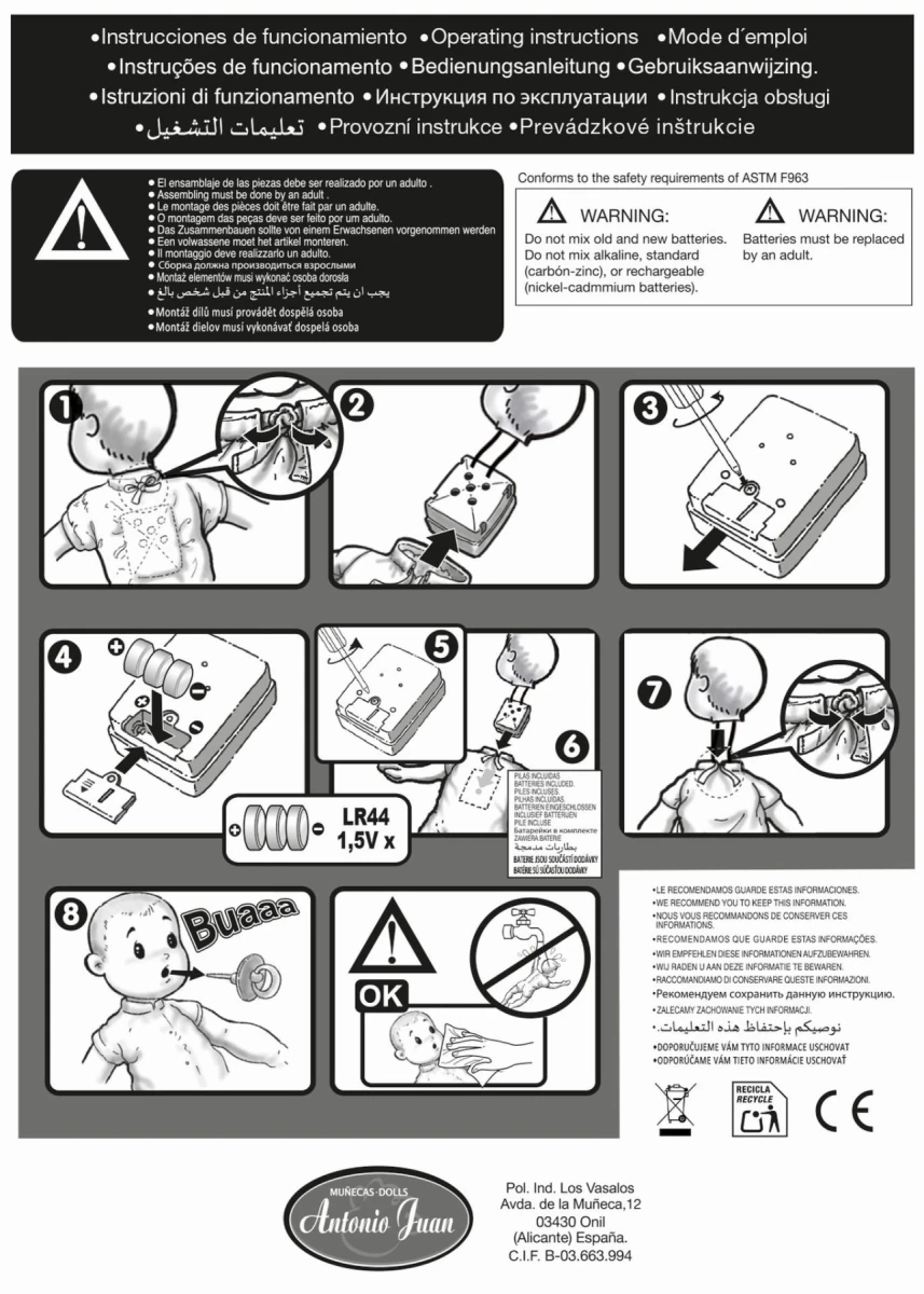 Součástí balení je 3 x knoflíková baterie LR44 s návodem na její výměnu. Baterie jsou spotřební zboží a proto jejich vybití není důvodem k reklamaci panenky.
