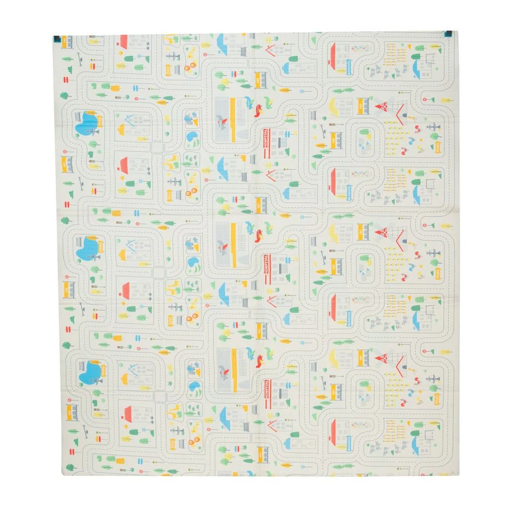 Na jedné straně je městečko plné uliček, ideální pro malé motoristy, na druhé straně veselý potisk se zvířátky. Potisk v něžných barvách rozvíjí dětskou fantazii a podporuje rozvoj zrakového smyslu a koordinace. Podložka je vyrobena z XPE pěny, což je velmi lehký a zároveň velmi pružný a pevný materiál. Na potisk byl použit inkoust z rostlinného oleje, aby v každém ohledu výrobek odpovídal vysokým bezpečnostním potřebám děťátka. Podložka je dodávána v praktické cestovní tašce, do které si svou oblíbenou podložku můžete jednoduše složit a vzít s sebou ať už na dovolenou nebo k babičce.