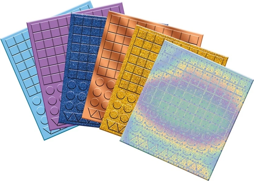 Šikovné modely a pokyny jsou vytištěny uvnitř krabice. Tato mozaiková dílna potěší příznivce magie, ty nejpečlivější, ale i příznivce dekorací: po dokončení mohou být obrazy hrdě vystaveny, aby přinesly nádech lesku do vašich dní!