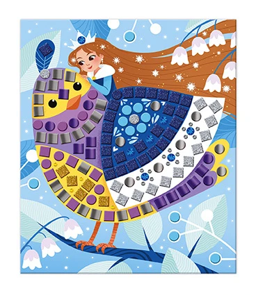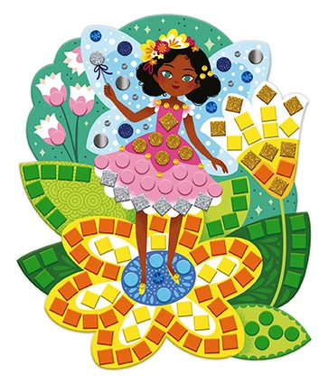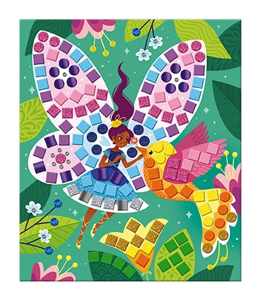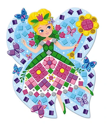 Děti doplňují na připravené předlohy drobné barevné čtverečky z pěnové mozaiky a štrasové kamínky. Postupným zdobením vznikají originální a efektní obrázky, ze kterých budou mít radost i pocit hrdosti na vlastní tvorbu.