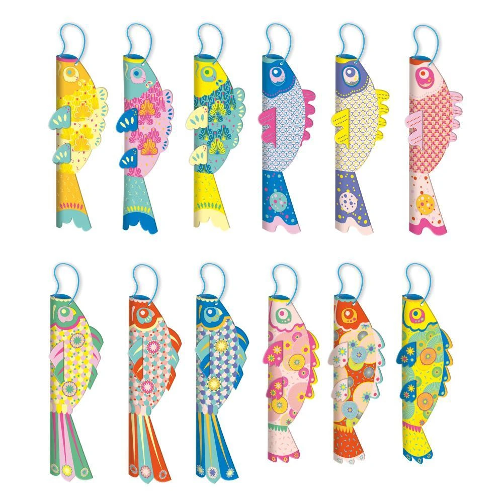Tato kreativní sada obsahuje: 12 předem vyřezaných ryb, 2 archy nálepek, nit a 1 brožuru s modely a návody, pomocí návodu se děti řídí jednotlivými pokyny a vytvářejí své výtvory samostatně!