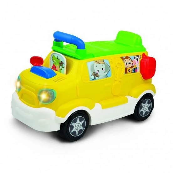 Auto/odrážedlo Winfun má v kapotě slot pro vkládání kartiček, které jsou součástí balení. Ty zobrazují různá zvířata. Po vložení karty zazní jméno zvířete, jeho počáteční písmeno a zvuk, který vydává. Aby byly karty vždy bezpečně uloženy, ale zároveň snadno v dosahu, je auto vybaveno malým úložným prostorem pod sedadlem. Po nastartování motoru se autu rozsvítí světla a začne vydávat zvukové efekty a chytlavé dětské melodie. Dále je auto vybavena kompasem, který při otáčení cvaká, a vysílačkou pro hraní rolí. Pro příjemnější manipulaci a jízdu je auto vybaveno vysouvacím držadlem