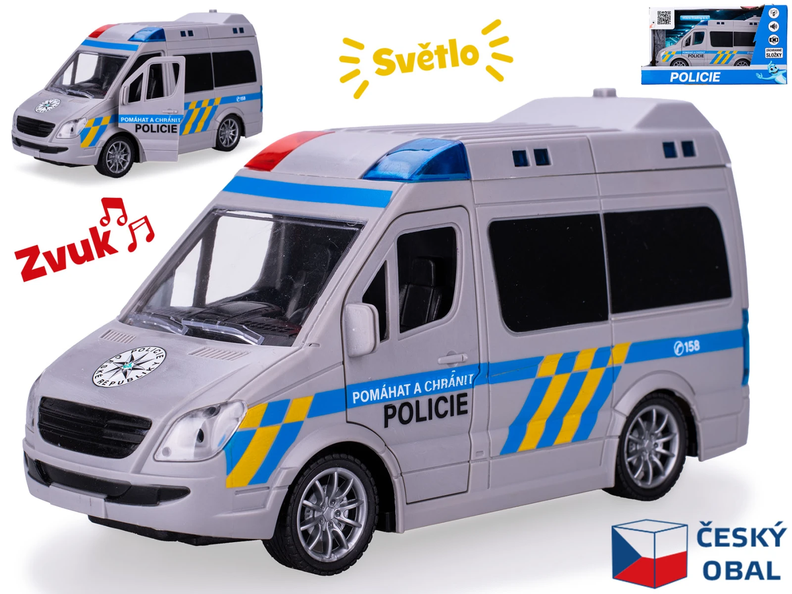 Vyraz do akce s českým policejním autem o délce 21,5 cm! Autíčko v měřítku 1:20 je vybaveno realistickými světelnými a zvukovými efekty, které věrně napodobují skutečné policejní vozidlo. Díky setrvačníku se snadno pohybuje vpřed a poskytuje dětem spoustu zábavy při hře na policisty. Ideální hračka pro malé dobrodruhy, kteří milují napětí, akci a rychlá auta.