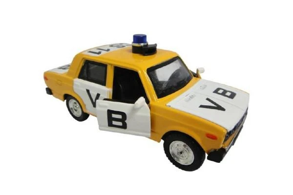 Auto veterán policie VB Lada 2106 1:32 kov 12cm na baterie se světlem se zvukem