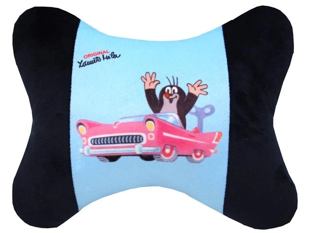 Tvarovaný polštářek s motivem Krtečka, díky kterému bude dlouhé cestování pohodlnější. Guma na zadní straně se dá navléknou na opěrku hlavy v autě a budete mít polštářek kdykoliv hned po ruce. Pratelný.