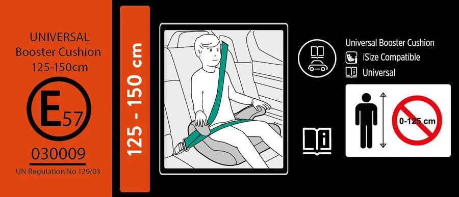 Dítě se připoutá pomocí samonavíjecích 3-bodových bezpečnostních pásů vozidla. Samotný podsedák se umístí ve vozidle na zadní sedadla čelem ve směru jízdy.