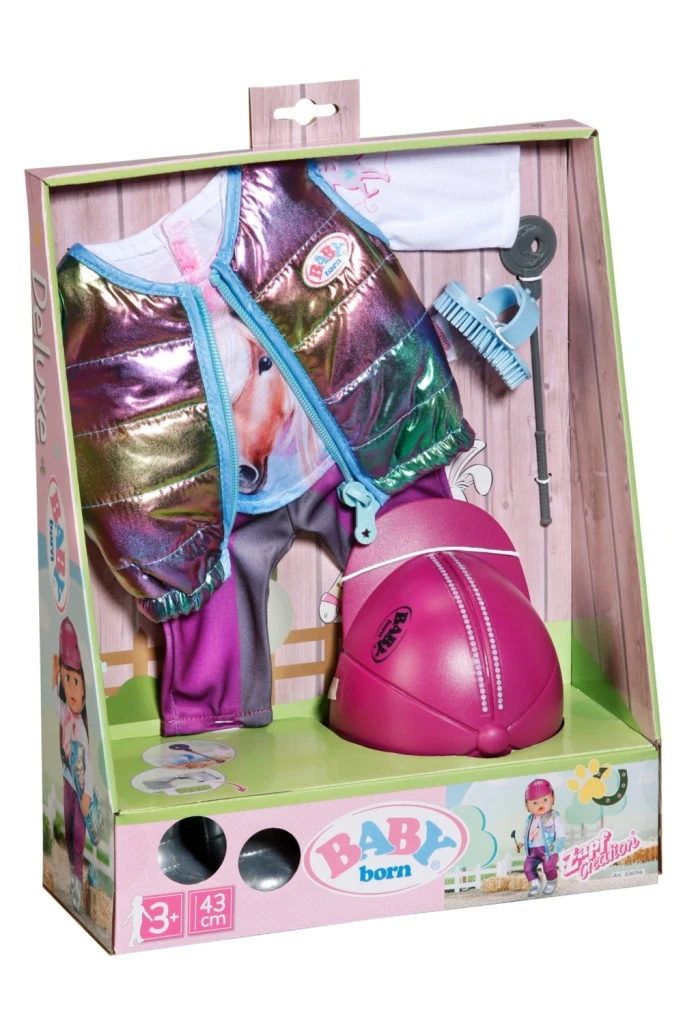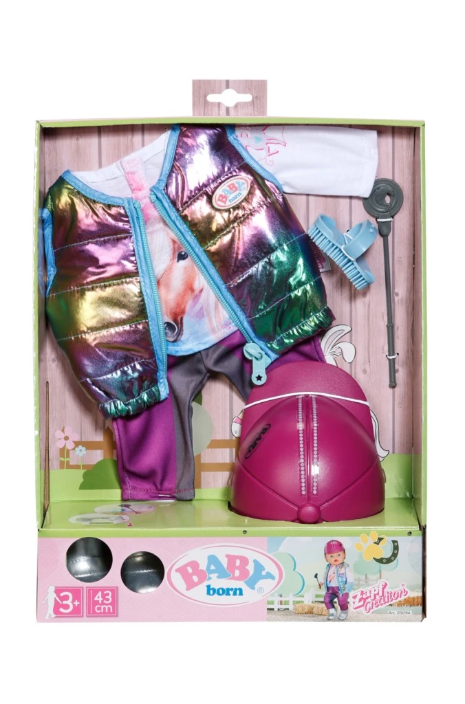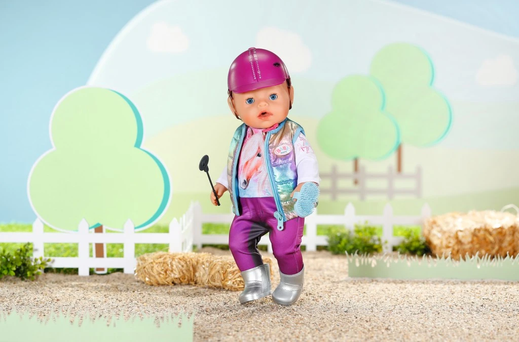 Vše dokonale ladí a promění každou hru v realistické jezdecké dobrodružství. Oblečení padne panence BABY born i Starší sestřičce a dalším panenkám velikosti 43 cm.