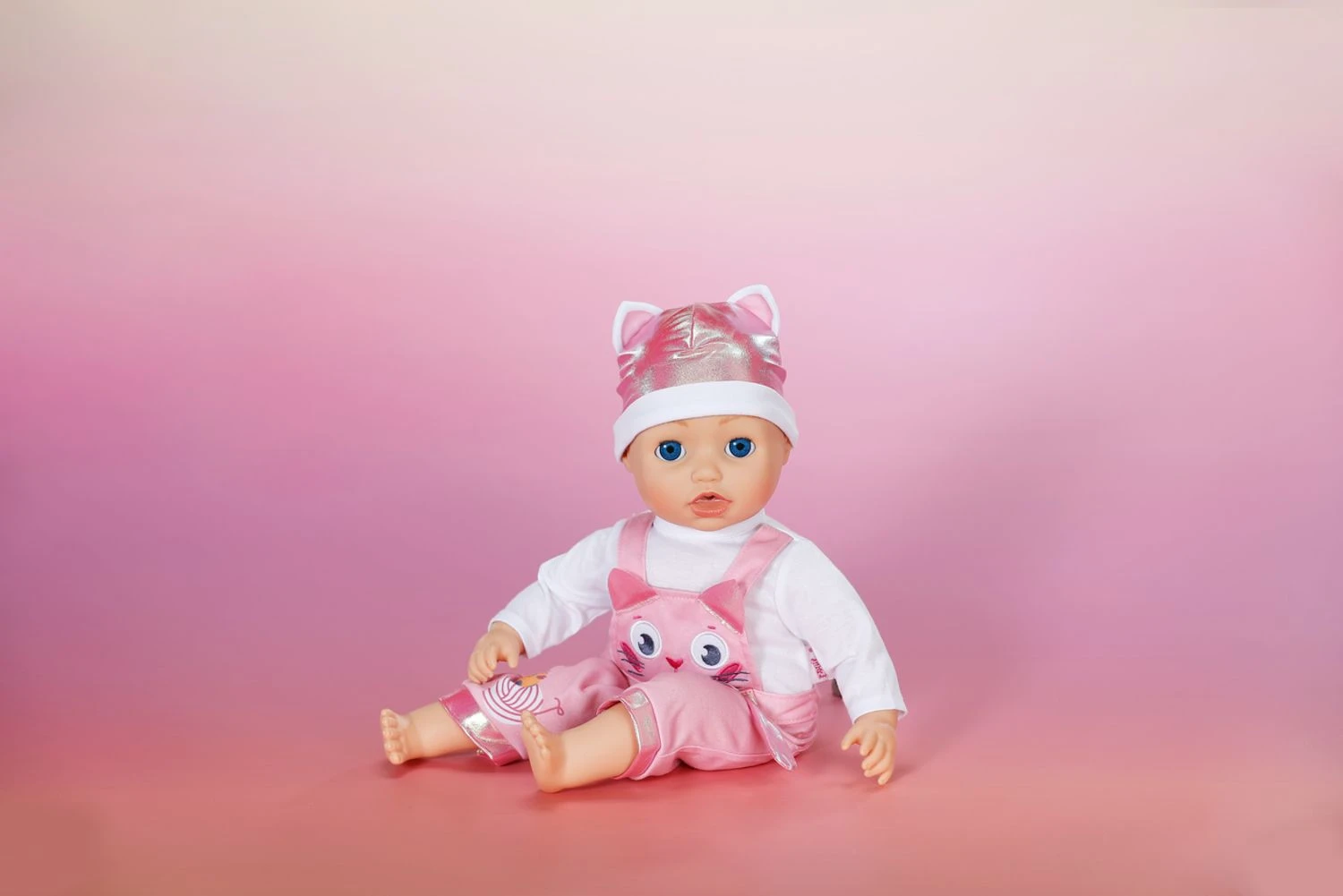 V tomto kočičím overalu s dlouhými rukávy a laclovými kalhotami s potiskem se Baby born promění v malou mazlivou kočičku. Čepička s roztomilýma kočičíma ušima dokonale doplňuje celý outfit. Na nohavici kalhot je potisk, kde si kačenka Berta hraje s klubíčkem vlny. Chce se kočička Cookie připojit k zábavě?