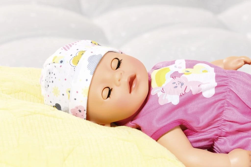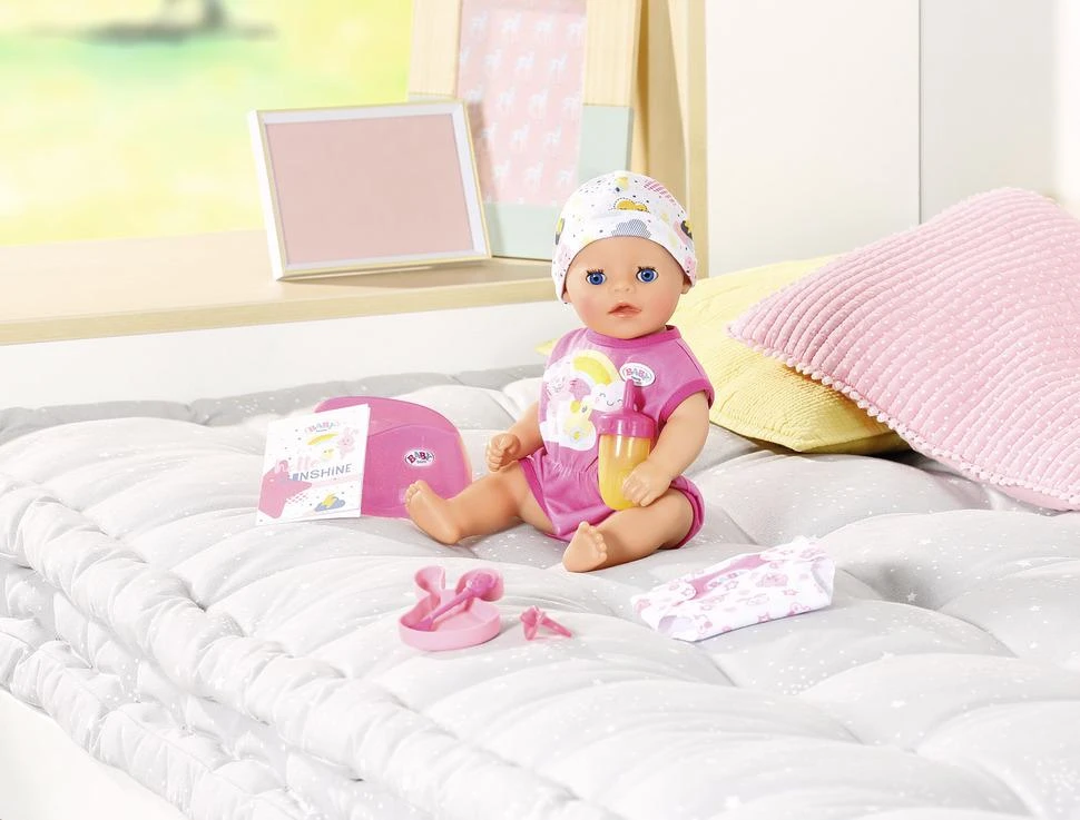 Malá holčička s tělíčkem z příjemného „Soft Touch“ materiálumá spoustu funkcí a malí rodiče panenek už od dvou let si s ní užijíspoustu zábavy. Stejně jako jiná miminka, i tahle holčička má nejradějipití z lahvičky, jídlo a spánek. Když se dostatečně napije, počůrá sedo plenky nebo do nočníku. I když s talířkem ve tvaru zajíčka a selžící s motivem medvídka hodně trénuje, pořád ještě sama jíst neumía musí jí pomoct její malá maminka. Ruce, nohy a hlavička panenky jsoupohyblivé. Panenka má pohodlný růžový obleček, navržený speciálnětak, aby ji při pohybu nikde neškrtil a nepřekážel. Po celém dni hraní avečerním koupání je BABY born Little tak unavená, že zavře oči a usnehned, jakmile ji její malá maminka uloží do postýlky. Někdy ale ještěnechce spát a roní opravdové slzy. • BABY born Soft Touch Little • Másedm životních funkcí pro skvělou zábavu • Různorodé hry s panenkamiBABY born zvyšují představivost a bylo prokázáno, že podporují rozvojspolečenských dovedností a hodnot jako je zodpovědnost, komunikace a empatie• Funguje bez baterií BABY born Soft Touch Little holčička ve velikosti36 cm má na sobě overálek a čepičku. Součástí je nočník, látkováplenka, lahvička, talířek se lžičkou, dudlík a rodný list.