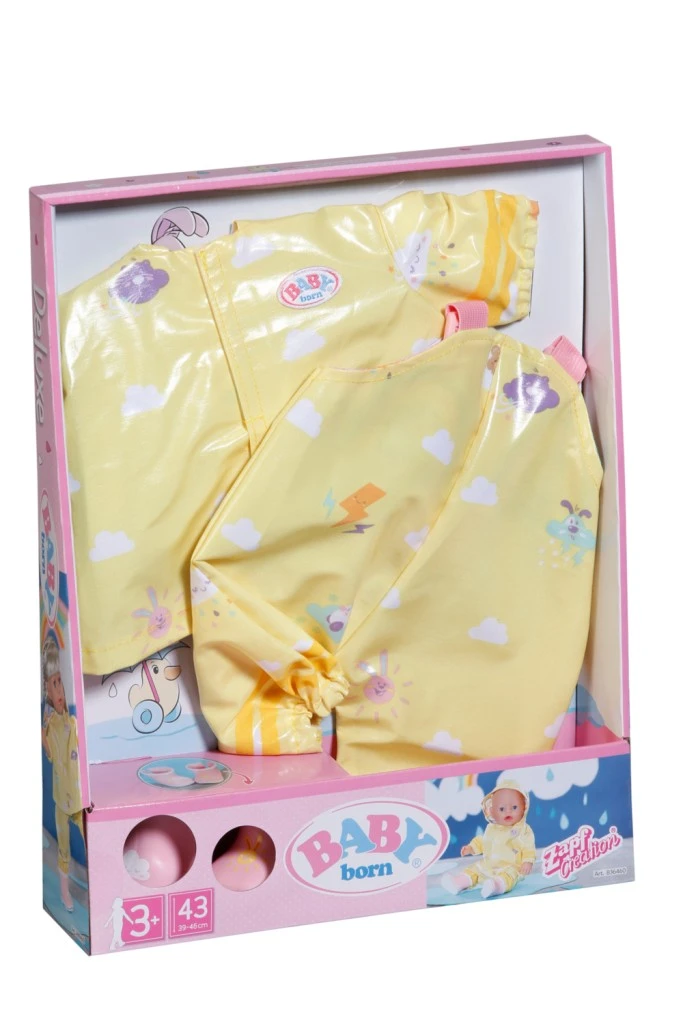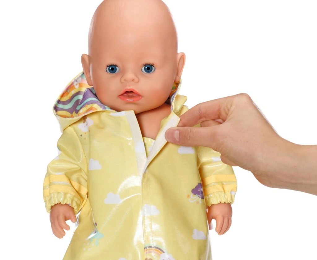 Součástí jsou také praktické kalhoty, takže panenka zůstane v suchu od hlavy až po paty. Tento outfit je ideální pro podzimní a zimní dny plné fantazie a dobrodružství – ať už se BABY born vydá na procházku s kamarády, nebo jen poslouchat kapky deště u okna.