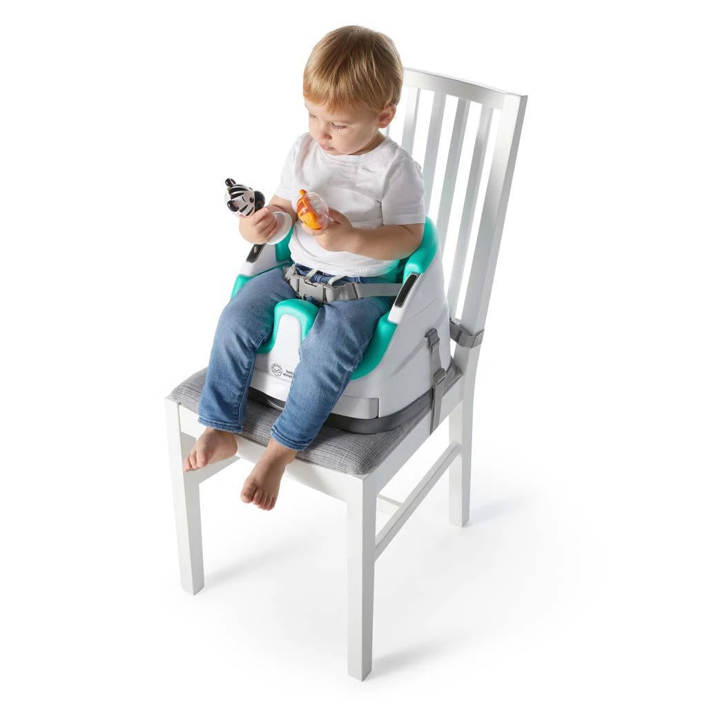 Snadno se přemění ze stolku na krmení na stanici aktivit s chrastítky s přísavkami, které využívají oblíbené postavičky Baby Einstein - tygříka Tinker a zebru Zen - na procvičování motorických dovedností a představení příčin a následků. Sedadlo je určeno pro děti od 6 měsíců do batolecího věku, připíná se na většinu jídelních židlí. Funkce 2v1 umožňuje použít jej jako sezení u stolu, ale i jako sedadlo na podlaze během volného času.