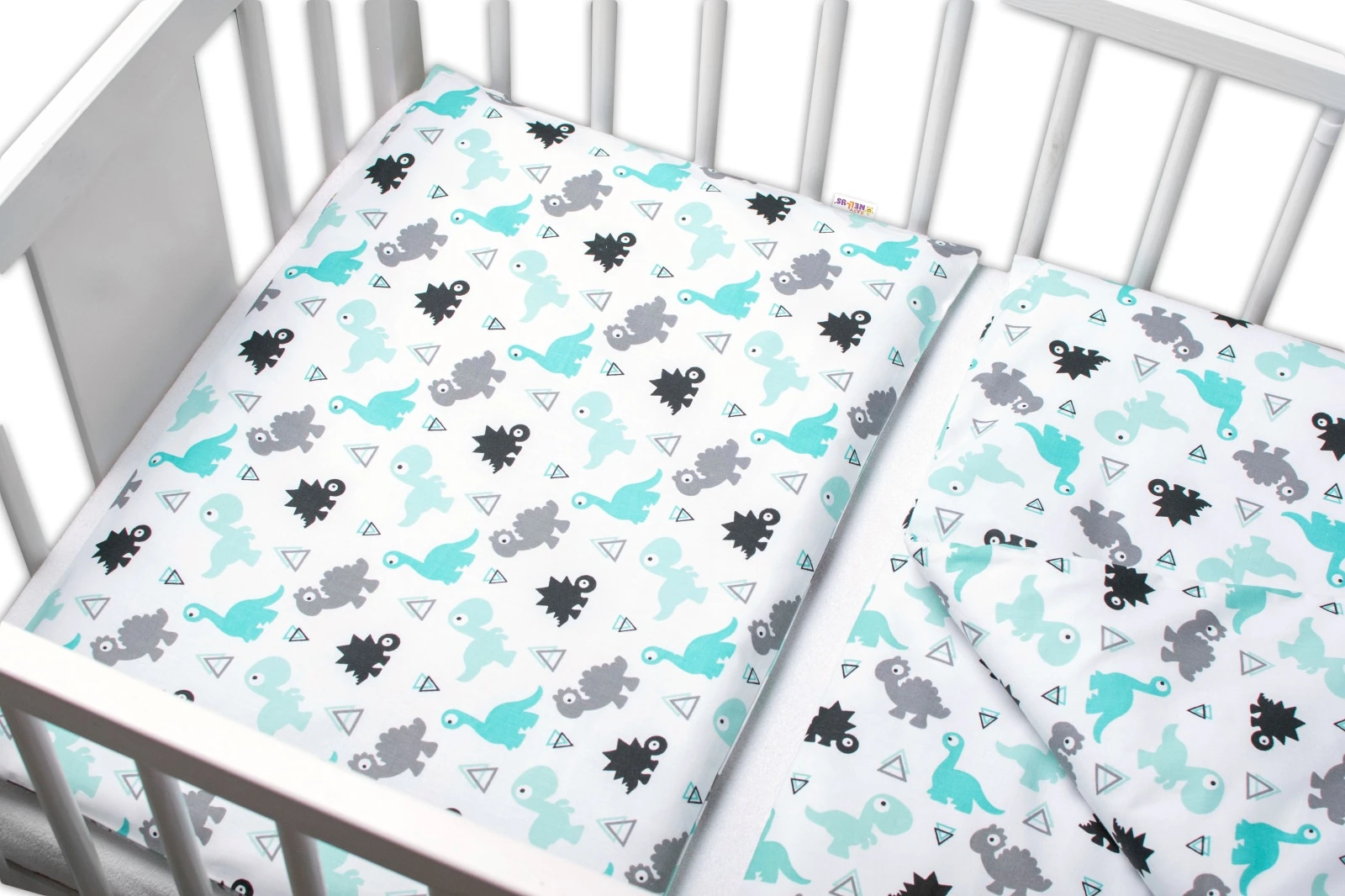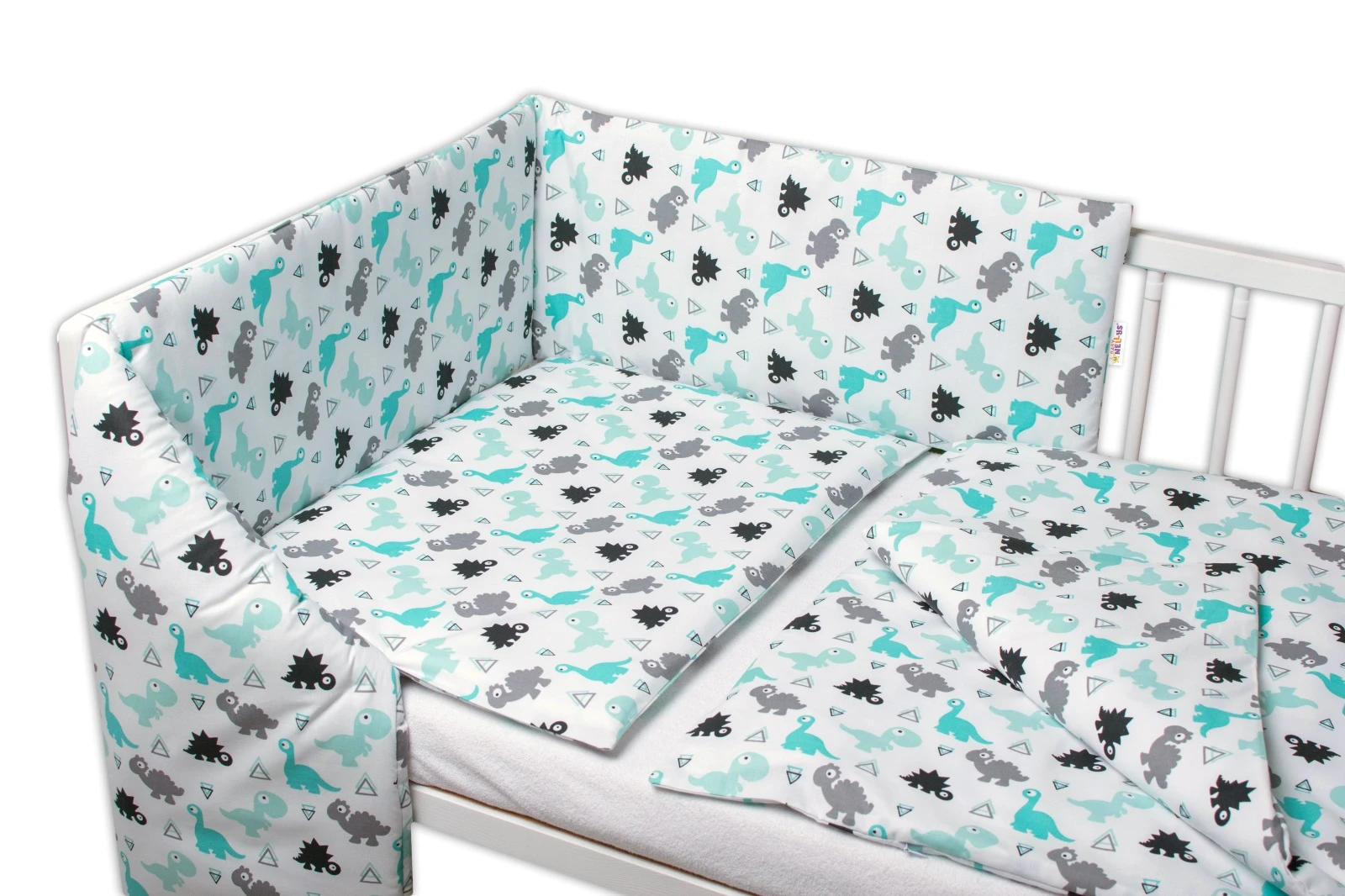 3-dílná sada Mantinel s povlečením Dinosauři bílá 135x100 cm Baby Nellys