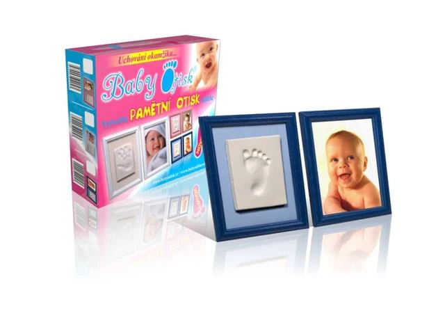 Baby Otisk Vám umožní samostatně vytvořit otisk ručičky nebo nožičky dítěte do 12 let do speciální trvanlivé hmoty, kterou po vyschnutí přilepíte do připraveného rámečku.