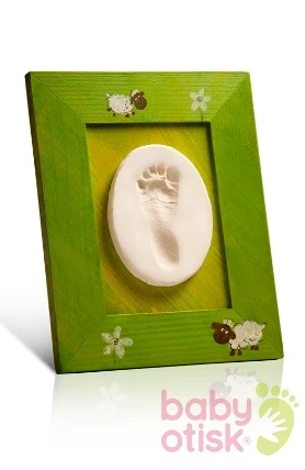 K provedení otisku je dále potřeba mikrotenový sáček, váleček a nůž. Po použití váleček a nůž řádně umyjeme. Aby se dítěti hmota na ručičku nebo nožičku nelepila, potřeme dítěti končetinu dětským olejíčkem. Po provedení otisku pokožku dítěte, která přišla do styku s hmotou umyjeme mýdlem a opláchneme vodou. Zabráníme dítěti, aby v průběhu provádění otisku dávalo končetinu, která přišla do styku s hmotou do pusy. Příprava a provedení otisku Hmotu navlhčenými dlaněmi asi 30 sekund prohněteme. Následně položíme na sáček a rozválíme válečkem na tloušťku cca min 5mm. Dítěti potřeme ručičku nebo nožičku dětským olejíčkem a provedeme vlastní otisk. Pokud se otisk nezdaří napoprvé, hmotu znovu prohněteme a celý postup opakujeme. Potom hmotu ořežeme do požadovaného tvaru a ponecháme 48h zvolna vysychat při pokojové teplotě (ne na slunci, či topení). Zbylou hmotu dáme do PE (polyetylenového) sáčku ne mikrotenového. Případné vzhledové vady vyschlého otisku lze zahladit přetažením prasklinek čerstvou hmotou a navlhčenými prsty. Po uplynutí doby otisk nalepíme do rámečku a necháme vyschnout na dobře větratelném místě 24h. Po vyschnutí lze povrch otisku různými způsoby barvit a lakovat pomocí temperových nebo akrylových barev . Hmotu lze z rukou odstranit běžným umytím. Hmotu chraňte před sálavým teplem topných těles a slunečním zářením. Hmota je zdravotně nezávadná. Pak již rámeček můžeme pověsit v dětském pokoji. Výrobek je zdravotně nezávadný. Je testovaný Státní zdravotnickým ústavem. (SZÚ) Chráněno Úřadem průmyslového vlastnictví. Balení obsahuje 1 ks ručné malovaného rámečku, který slouží na otisk ručičky nebo nožičky. Dále výrobek obsahuje zdravotně nezávadnou hmotu, lepidlo a návod. Baby Otisk® bude nejen krásnou vzpomínkou pro rodiče a dítě, ale zároveň originálním dárkem pro prarodiče či rodinné známé. Výrobek je zdravotně nezávadný.