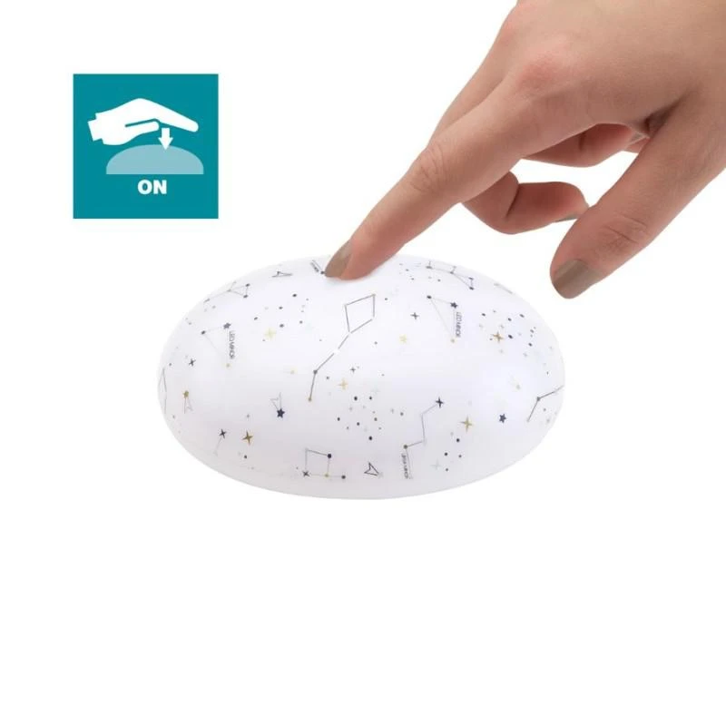 funguje nepřetržitě nebo s automatickým časovačem (30 minut pro noční světlo, 10 minut pro bílý šum)