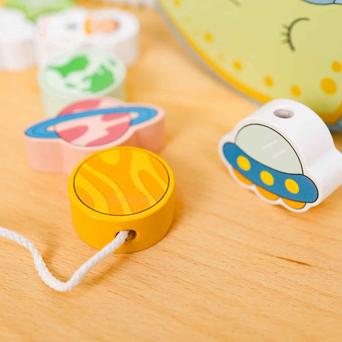 Obsahuje kostky s motivy astronautů, raket a vesmírných světů – podporuje zvědavost a kreativitu. Prvky rovnováhy trénují koordinaci ruky a oka a učí dítě rozumět rovnováze.