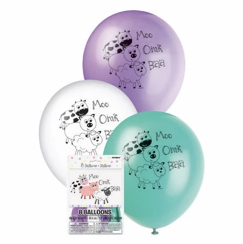 Balónek pastel 30 cm potisk "Farma", 8 ks