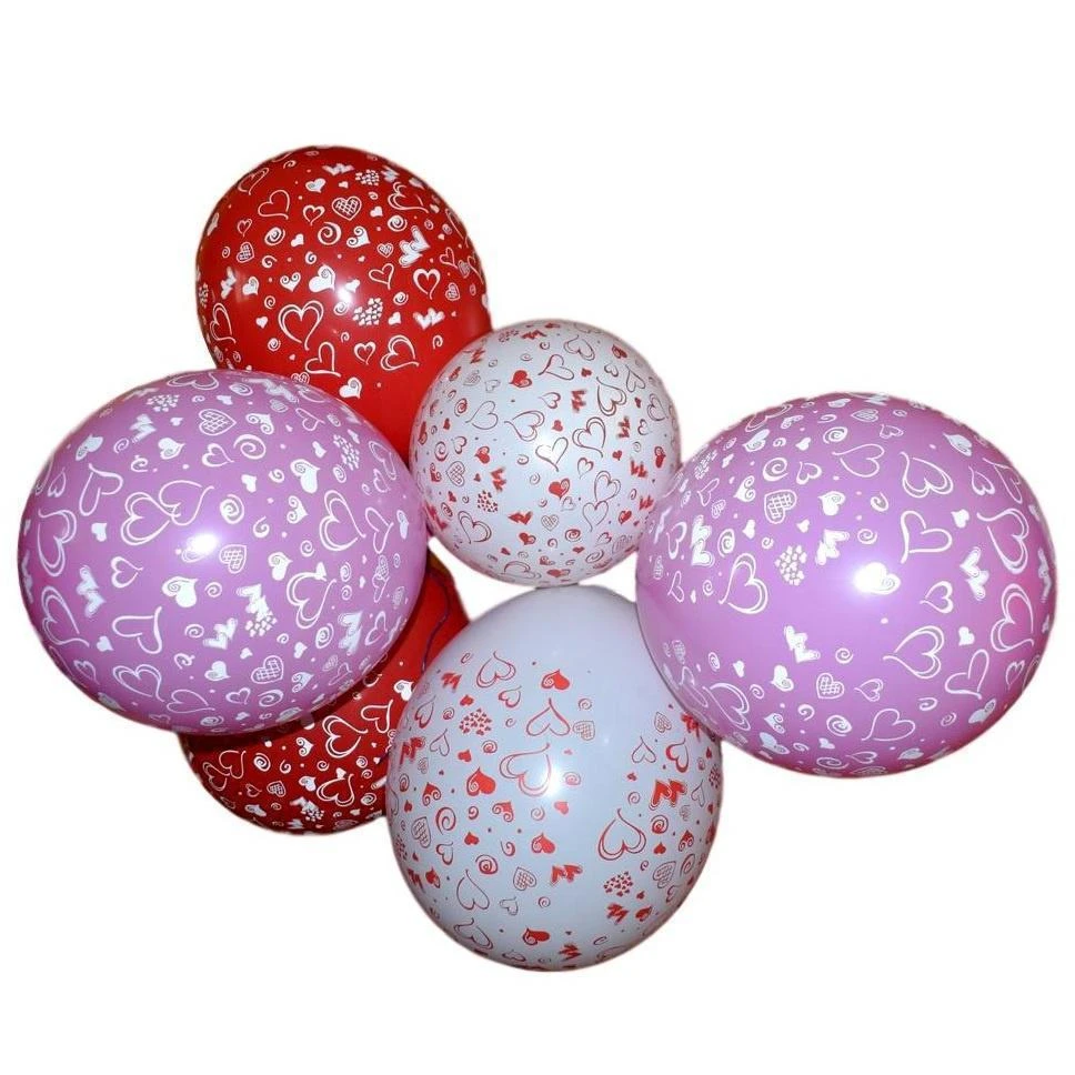 Balonky kulatý s potiskem srdce, sada 6 ks - bílá, růžová, červená