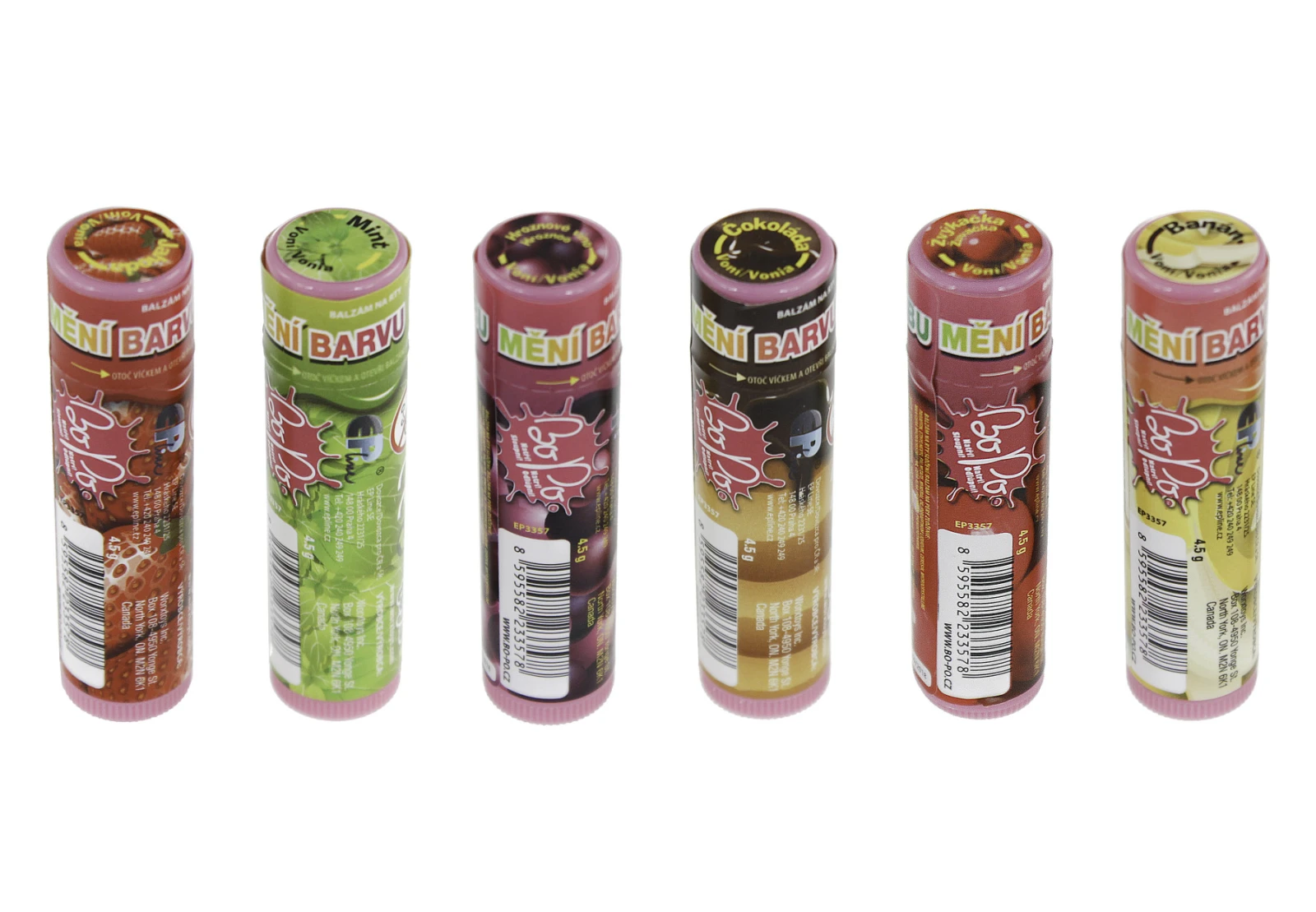 Varianty provedení: čokoláda, jahoda, banán, žvýkačka, hroznové víno, máta.