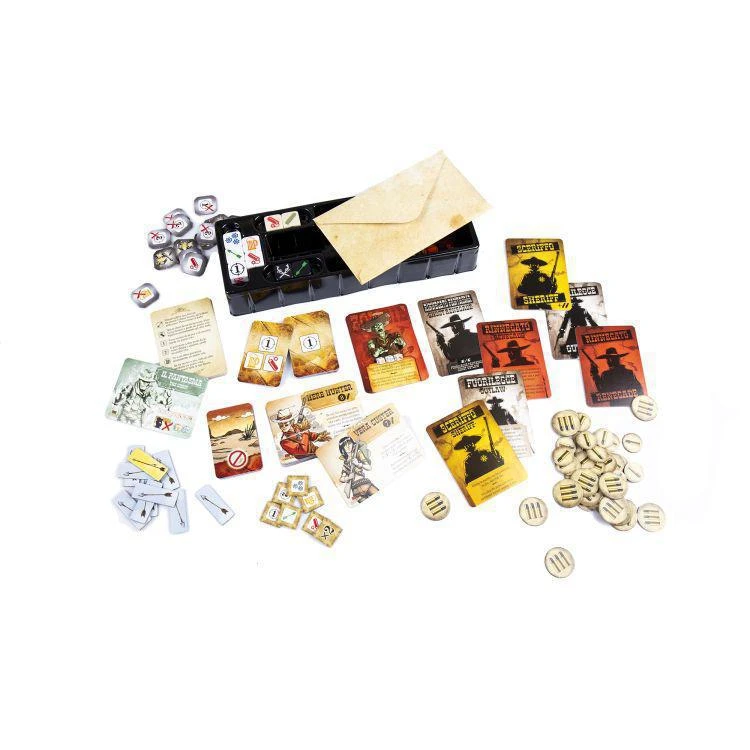Kostková exploze obsahuje: 9 kostek, 36 karet postav, 18 karet rolí, 1 kartu ducha, 29 malých karet, 17 přehledových karet, 3 rozdelovače karet, 10 žetonů šípů, 44 žetonů nábojů, 7 žetonů ducha, 15 žetonů soubojových zranění, 3 listy pravidel, 3 karty českých a slovenských pravidel.