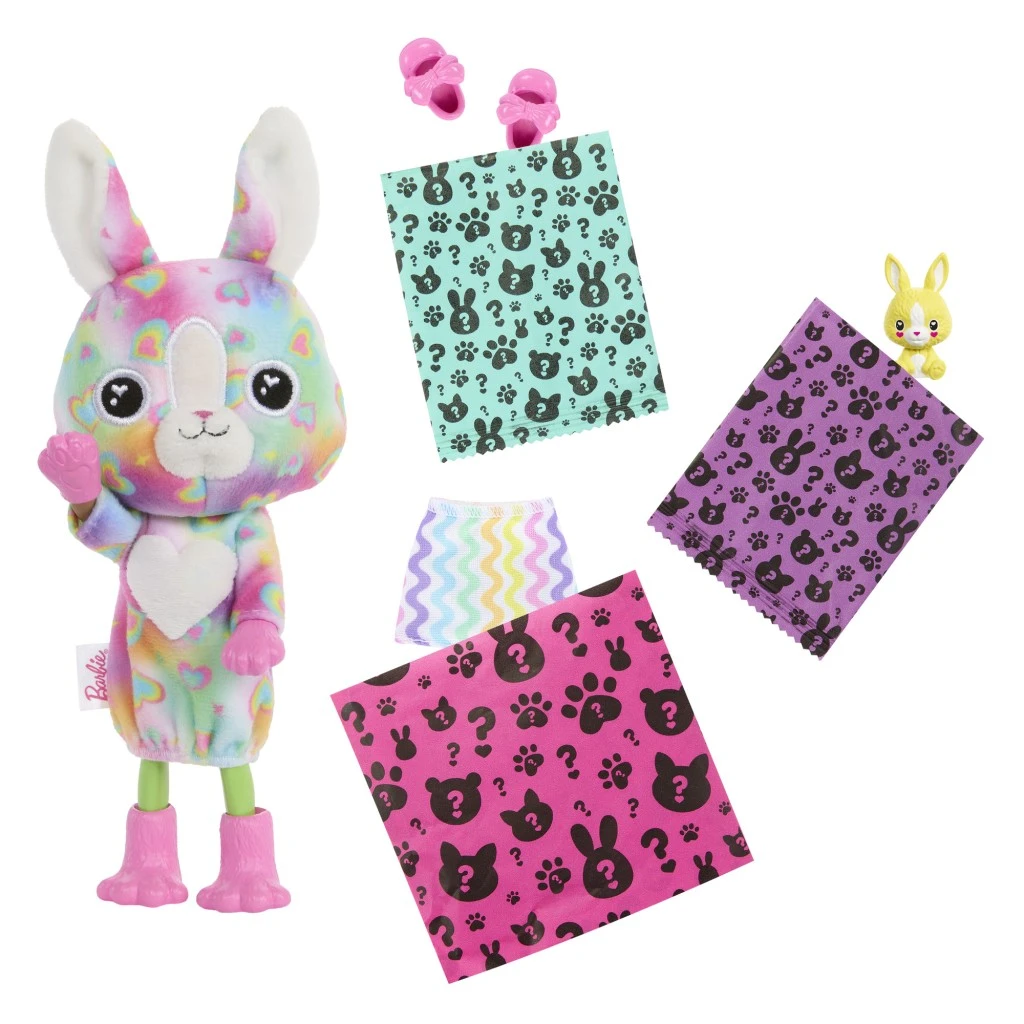 Po sejmutí plyšového kostýmu se ukáže panenka Chelsea™ a další doplňky – sukýnka a mini zvířátko, které ladí s jejím vzhledem. Plyšový kostým lze obrátit naruby a proměnit ho v oversized kabátek, zatímco hlavička kostýmu poslouží jako pelíšek pro mazlíčka.