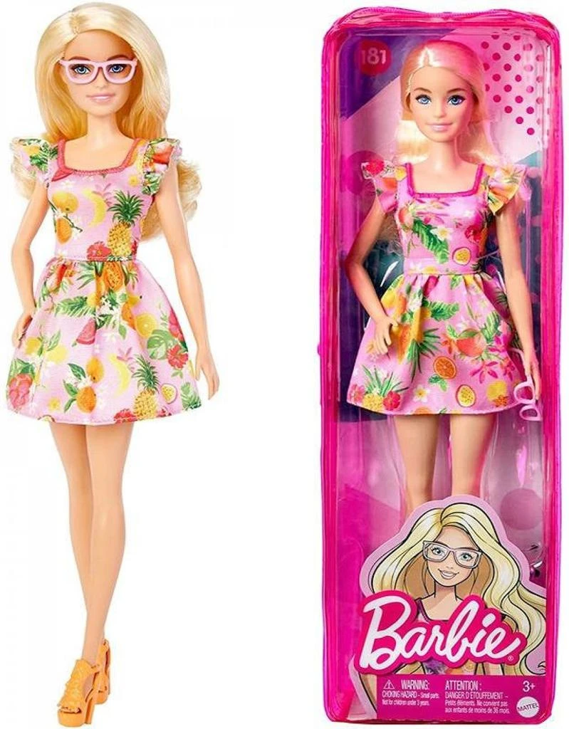 Využijte vinylový obal, ve kterém je panenka dodávána – přenášejte v něm panenku nebo jiné hračky, nebo si obal ozdobte! Balení obsahuje panenku Barbie, která na sobě má sladké ovocné šaty a oranžové boty na platfomě! Panenka neumí samostatně stát. Ploché boty se hodí pro panenky s kloubovými kotníky nebo plochýma nohama.