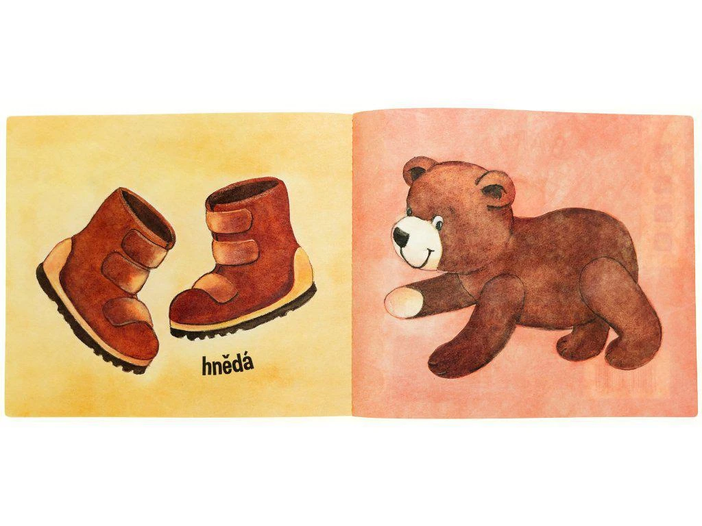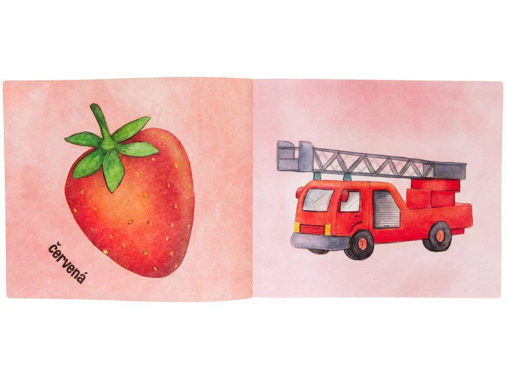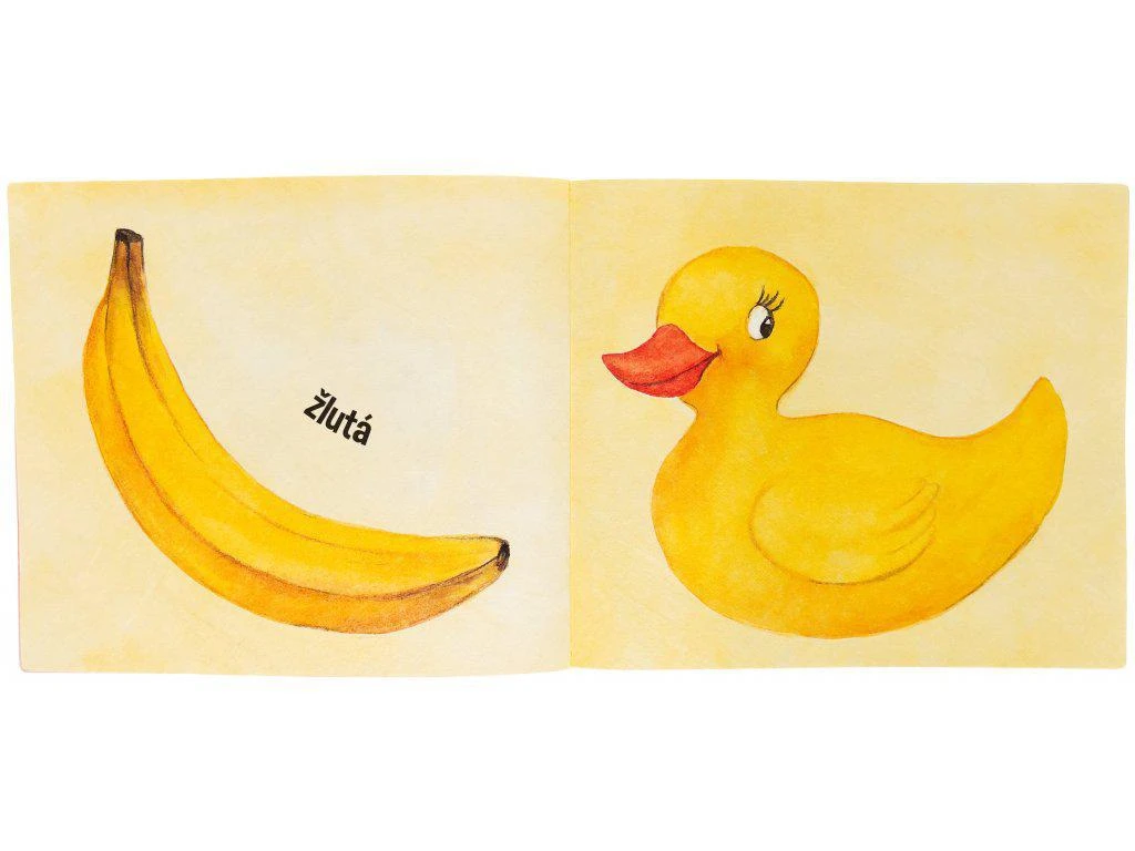 Knížky jsou z pevného a voděodolného materiálu - ideální pro batolata od 6 měsíců. Tuto knížečku může dítě muchlat i žužlat a nic se jí nestane, dá se v klidu dále používat. Také dítě je v bezpečí. Nemůže z ní nic odtrhnout, sníst ani vdechnout. Stránky jsou pevně sešité. Toto je jahoda, je červená. A podívej, jakou barvu má banán? A co je zač toto zelené zvíře? Ano, žába! S touto obrázkovou knížečkou se nejmenší čtenáři naučí barvy a procvičí si pozornost. Knížečka obsahuje barevné ilustrace a jednoduché texty. Rozvíjí řeč, vnímavost a jemnou motoriku.