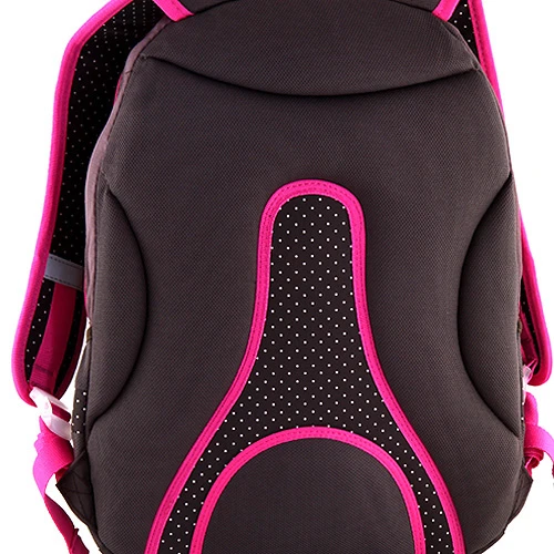 Záda batohu jsou příjemně polstrovaná pro pohodlné nošení. Funkčně tvarované ramenní popruhy v ideální šíři jsou též polstrované, vzdušné a výškově nastavitelné. V horní části velké měkké poutko přizpůsobené dětské ruce.