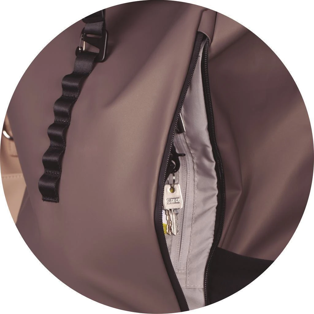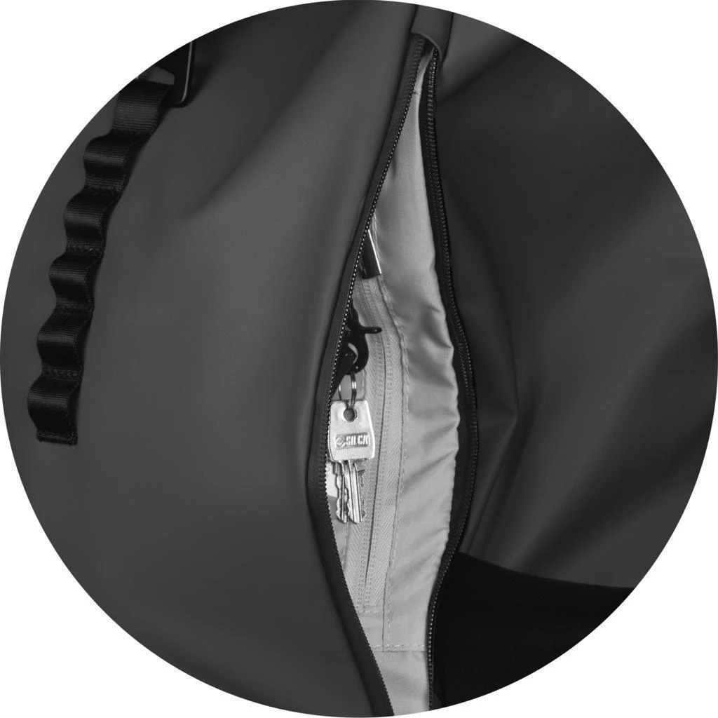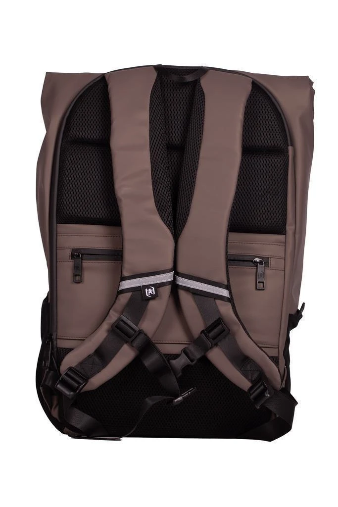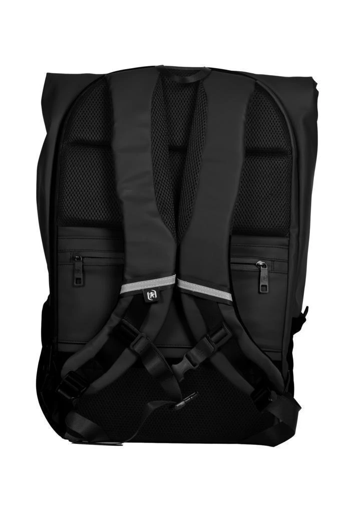 24 litrů, PU, 48 x 32 x 10 cm, ergonomicky polstrovaná záda, reflexní logo a prvky, voděodolný materiál a zip, možnost batoh srolovat pro přizpůsobení obsahu, uzavírání na klip, nastavitelné zapínání na hrudi na klip, kapsa na laptop a na láhev, přihrádka na oblečení a osobní věci, plastové nožky zespodu batohu.
