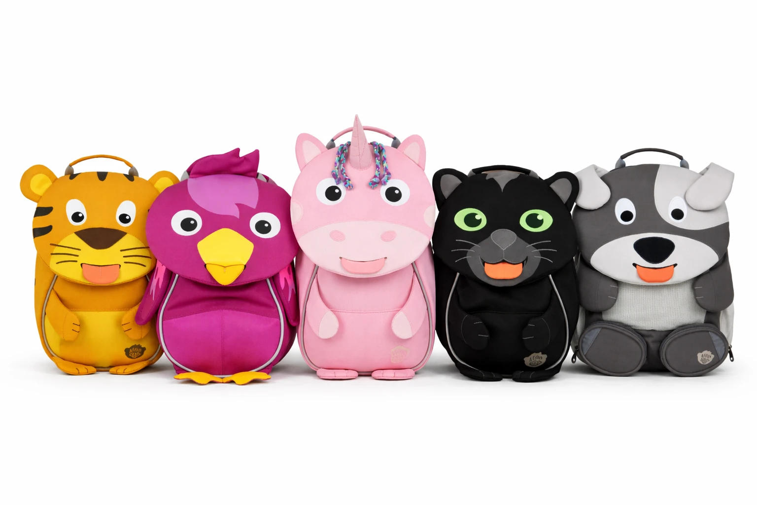 Značka Affenzahn je německá značka, která vyrábí kvalitní a vychytané baťůžky i batohy pro děti. Batohy pro předškolní děti ve věku 1-5 let německé značky Affenzahn nabízejí mnohem víc, než jen možnost přenášet všechny potřebné věci do školky či během výletu. Jsou ergonomické, lehké a hlavně hravé a rozvíjejí dětskou fantazii i jemnou motoriku. Batohy jsou vyráběny ekologicky šetrnou technologií z recyklovaných PET lahví.