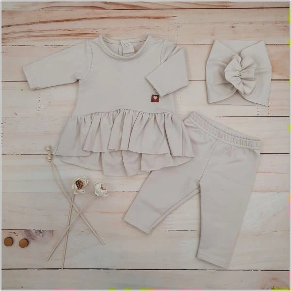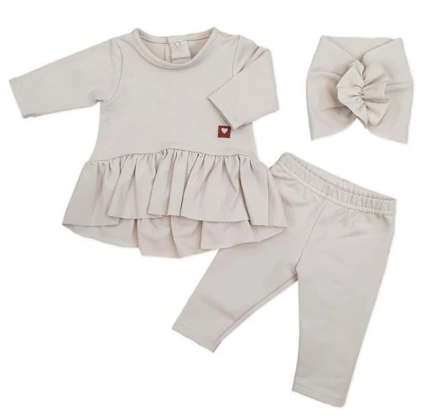 Bavlněná světle béžová sada 3dílná - tunika, legíny, turban Z&Z