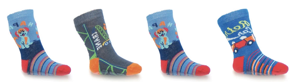 Pohodlné dětské ponožky s veselými motivy jsou ideální na doma i na každodenní nošení. Díky protiskluzové silikonové podrážce pomáhají předcházet uklouznutí na hladkých podlahách a poskytují větší jistotu při chůzi.