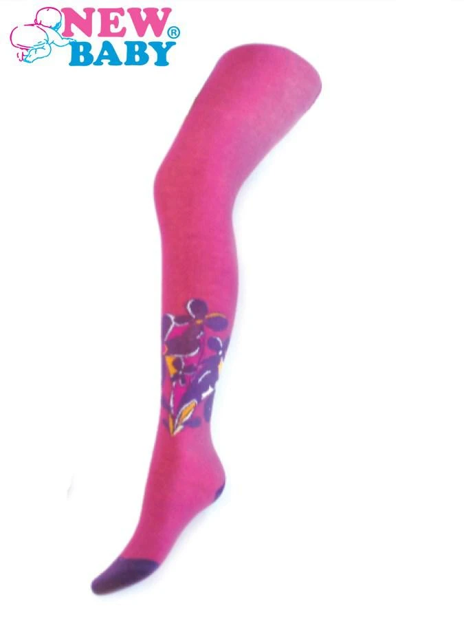 Bavlněné punčocháče New Baby Růžové s fialovými kytičky Vel. 128 (7-8 let)