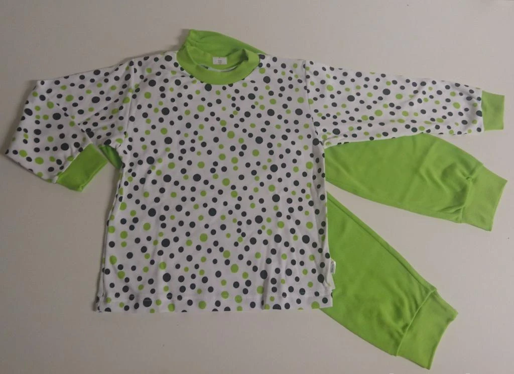 - bavlněné dětské pyžamo s potiskem zeleného puntíku je vhodné pro chlapce i děvčata