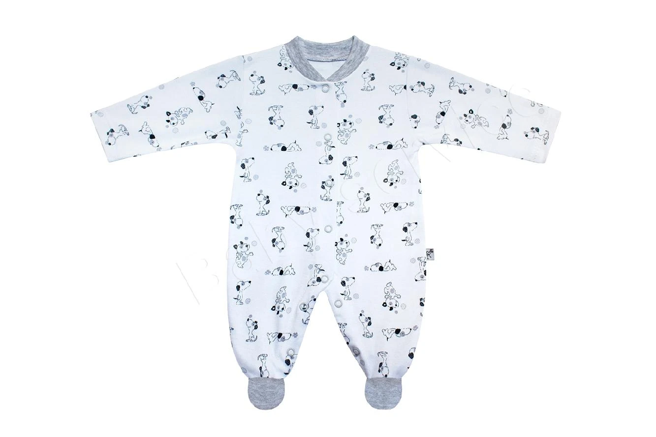 Bavlněný overal s rukavičkami Pejsek Baby Service Šedý lem